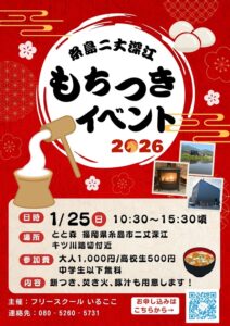 ピザもうまく焼けていたし、ぜんざいのゲームや最後のじゃんけん大会も盛り上がりました!次回は、1月25日(日曜日)フリースクール「いるここ」の仲間たちが、もちつきイベントを開催します。