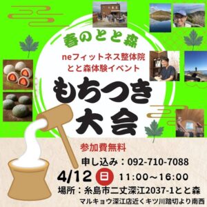 そこで、とと森の進捗状況を見ながら様々な体験ができる「とと森体験イベント」春のとと森もちつき大会を4月12日(日)11~16時に開催いたします。途中参加もできます!